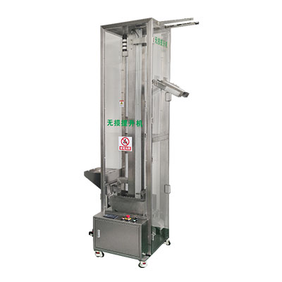 在充填機旁邊連線使用膠囊檢重秤,就需要把從充填機出來的高度較低的膠囊劑自動提升到膠囊檢重秤的位置較高的料倉入口。